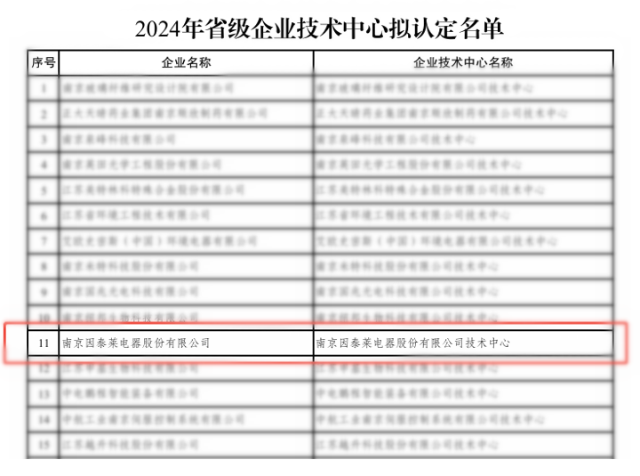 近日,南京因泰萊電器股份有限公司憑借扎實(shí)的技術(shù)創(chuàng)新能力和行業(yè)影響力,經(jīng)省工信廳、省發(fā)改委、省科技廳、省財(cái)政廳、省稅務(wù)局等部門(mén)認(rèn)定,成功獲評(píng)為江蘇省省級(jí)企業(yè)技術(shù)中…