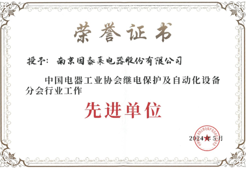 智慧INT | 南京因泰萊蟬聯(lián)中國電器工業(yè)協(xié)會繼電保護及自動化設(shè)備分會“年度先進單位”稱號